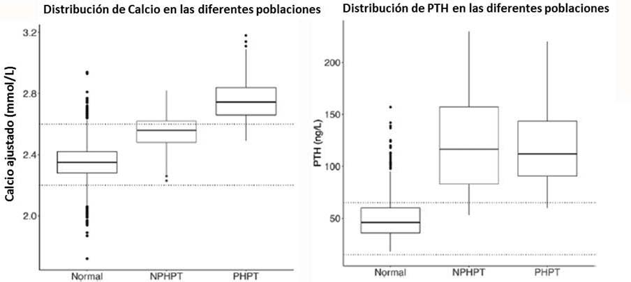 Los grupos PHPT y NPHPT tuvieron una variabilidad de calcio similar. El calcio en orina de 24 horas fue mayor en el grupo de PHPT en comparación con el grupos de NPHPT, pero la diferencia no fue significativa.