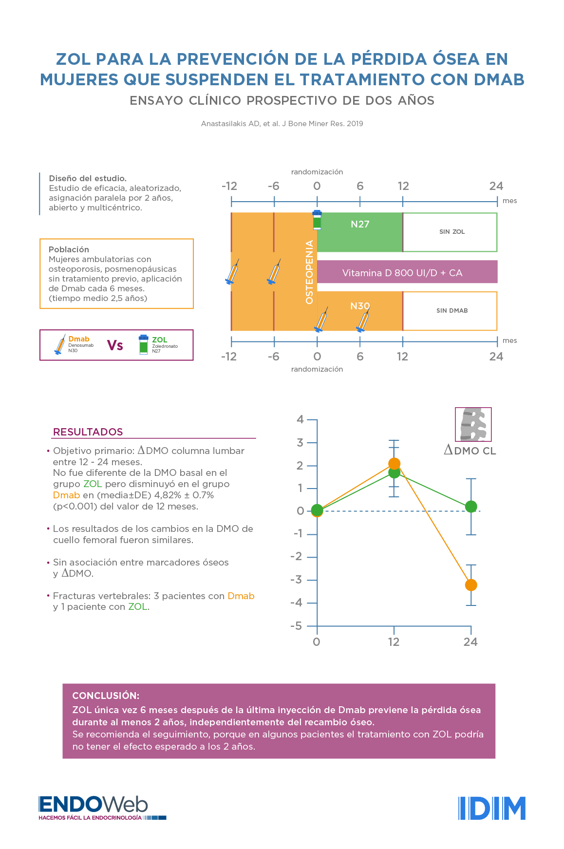 Zoledronate for the Prevention of Bone Loss in Women Discontinuing Denosumab Treatment. A Prospective 2-Year Clinical Trial. Anastasilakis AD, Papapoulos SE, Polyzos SA, et. al. J Bone Miner Res. 2019 Dec;34(12):2220-2228. doi: 10.1002/jbmr.3853.